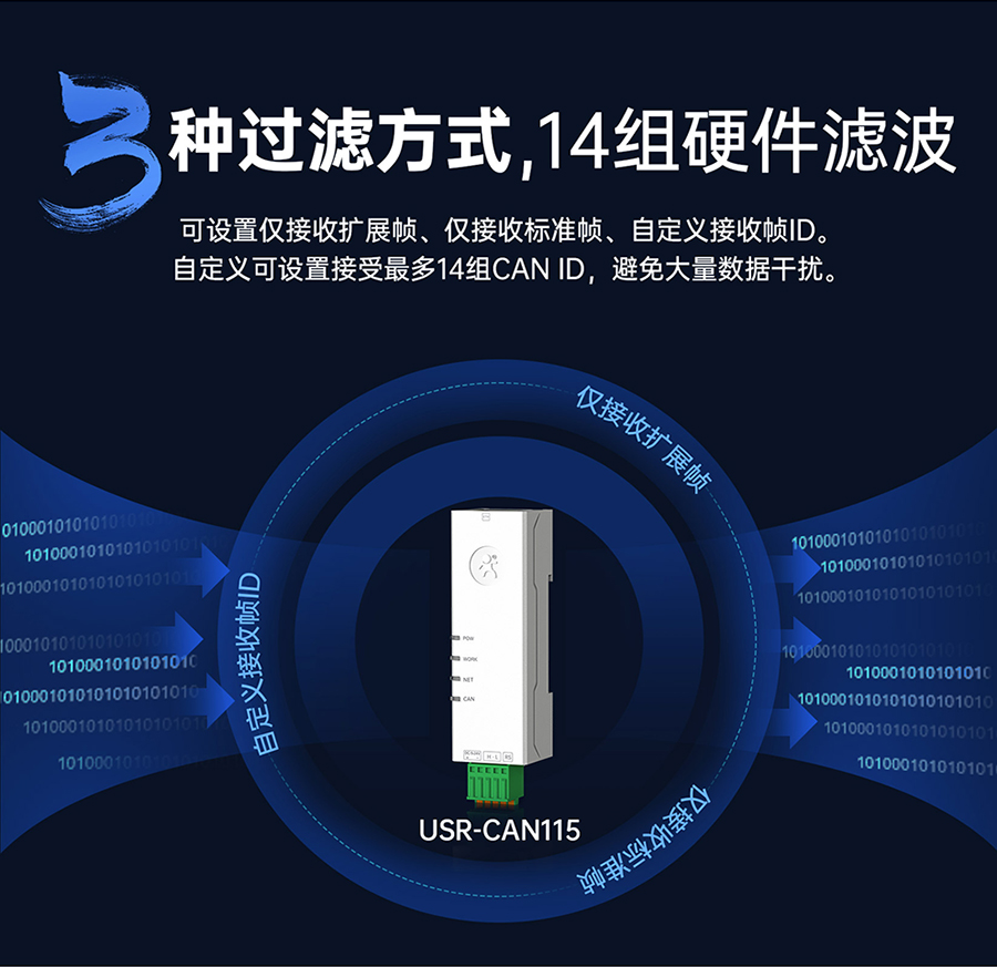 支持僅接收標(biāo)準(zhǔn)幀、僅接收擴(kuò)展幀、自定義幀ID過濾