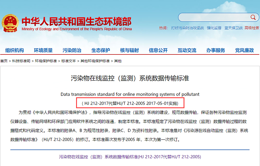 為應(yīng)對上述狀況,國家生態(tài)環(huán)境部科技標(biāo)準(zhǔn)司出臺《污染物在線監(jiān)控(監(jiān)測)系統(tǒng)數(shù)據(jù)傳輸標(biāo)準(zhǔn)》,從監(jiān)管層面對環(huán)境監(jiān)控過程的傳輸標(biāo)準(zhǔn)進行統(tǒng)一,對標(biāo)準(zhǔn)建立和傳輸格式進行了明確規(guī)定。